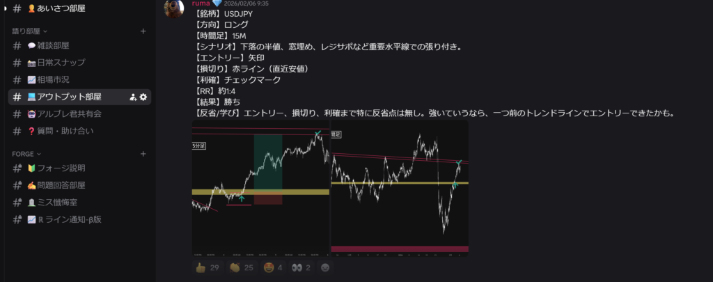 ✅トレード前に根拠をポストする事で冷静になれる。